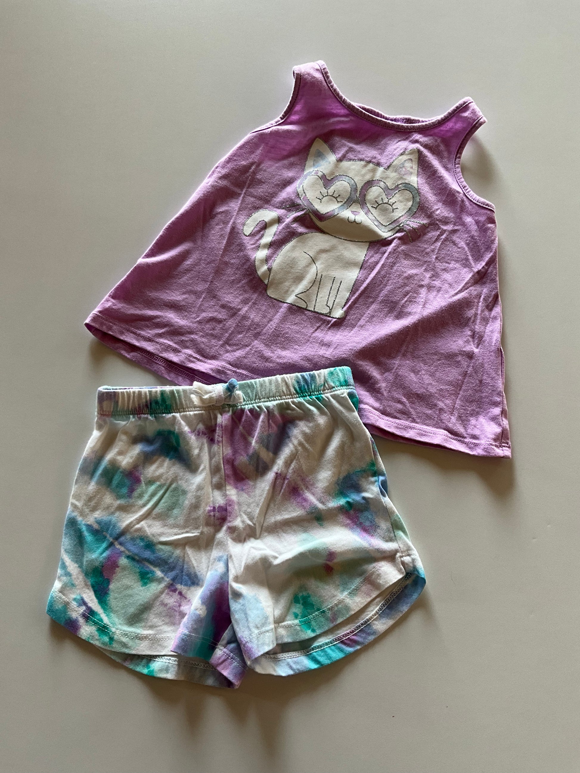 Children's Place size 3T. Purple tank and pull on tie dye shorts.