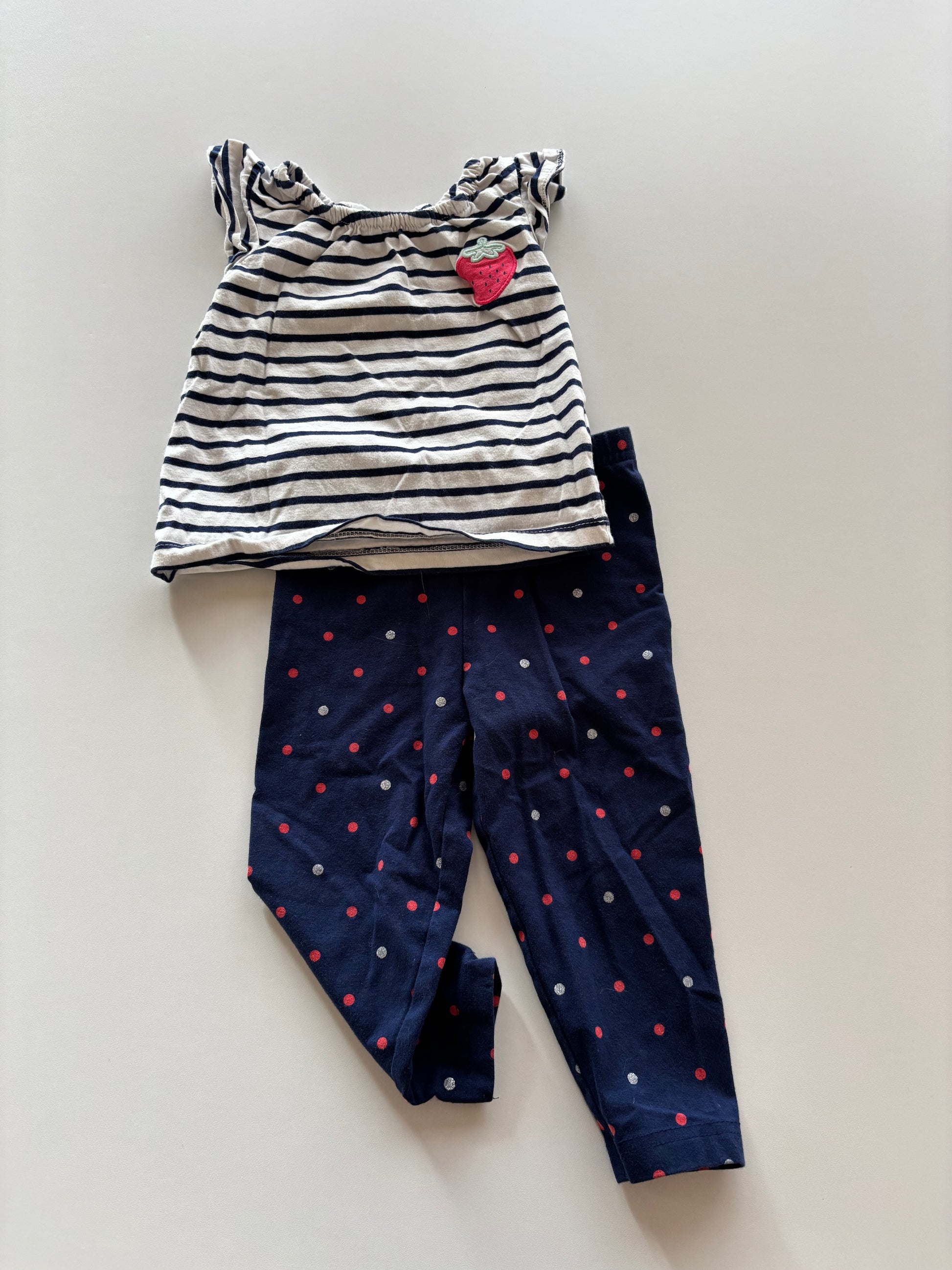 2pc Striped Strawberry Tee & Polka Dot Pants