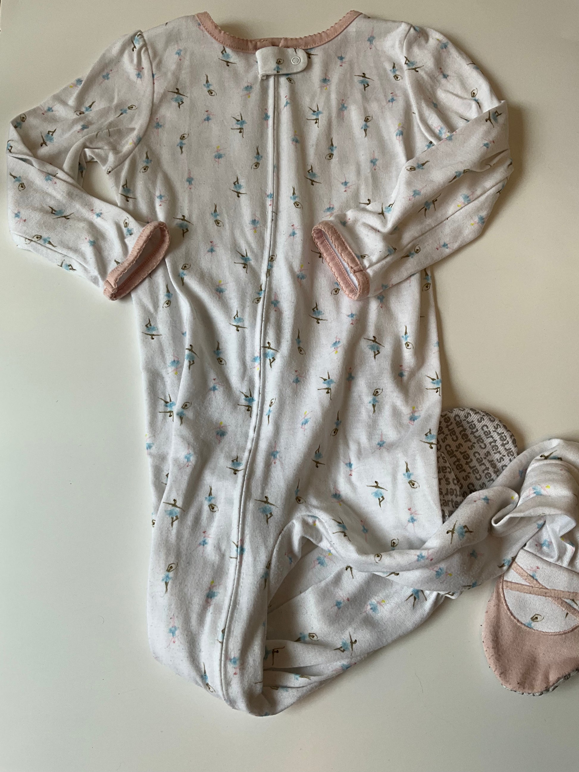 Carter's 3T. Ballet slippers on feet with grips.