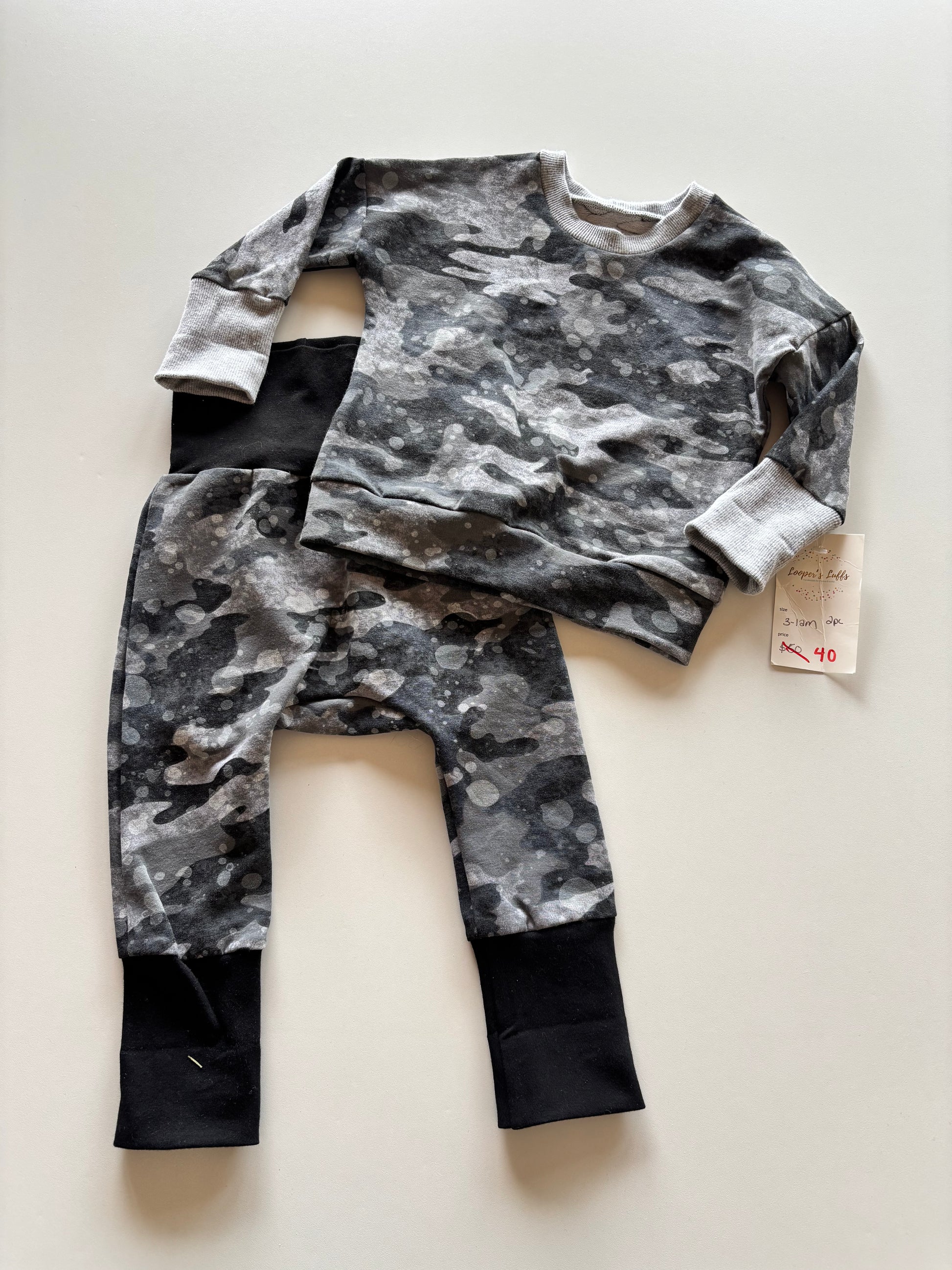 BNWT 2pc Grey Splatter Camo Set