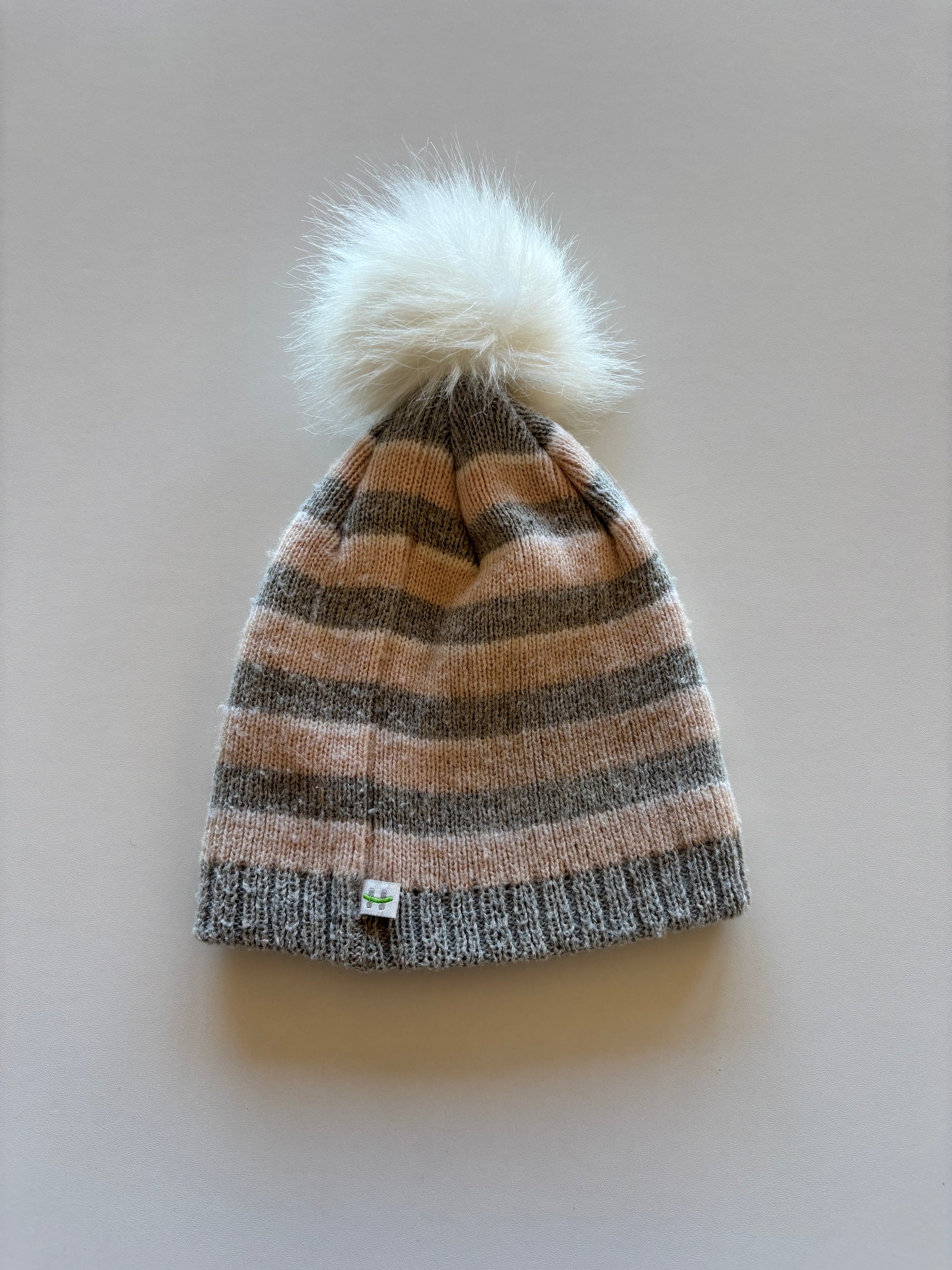 Grey & Pink Striped Pom Toque