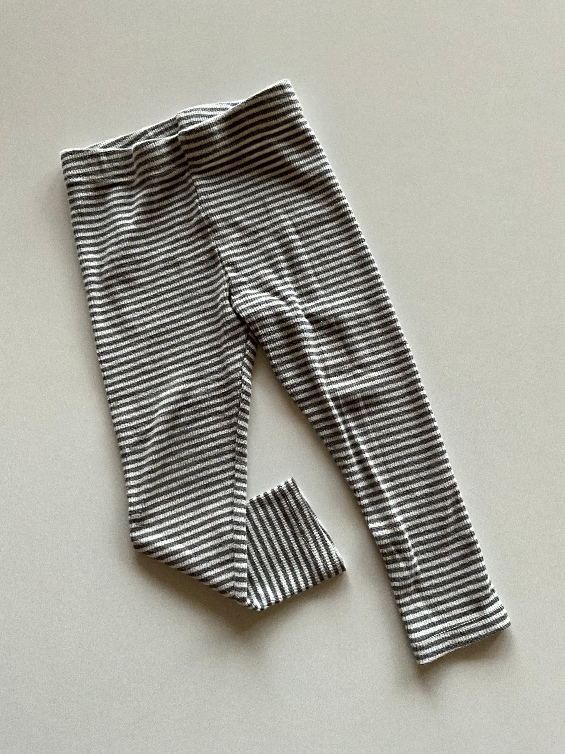 Grey & White Striped Ribbed Leggings