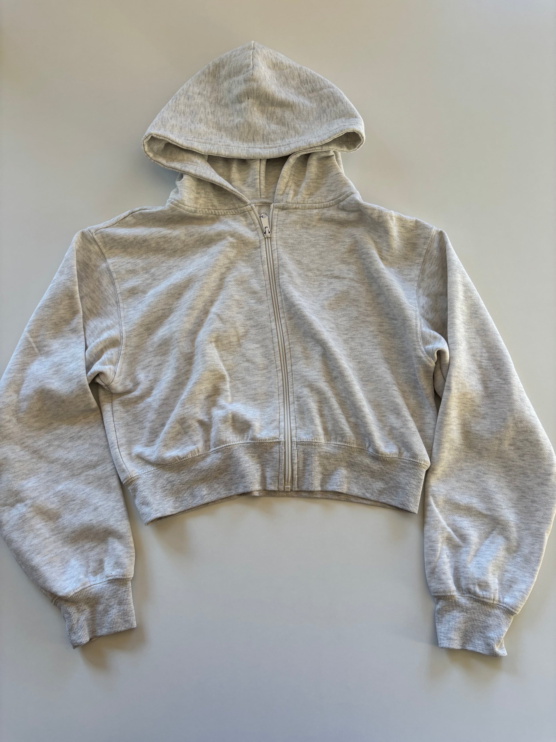 Light Grey Melange Cropped Zip Up Hoodie