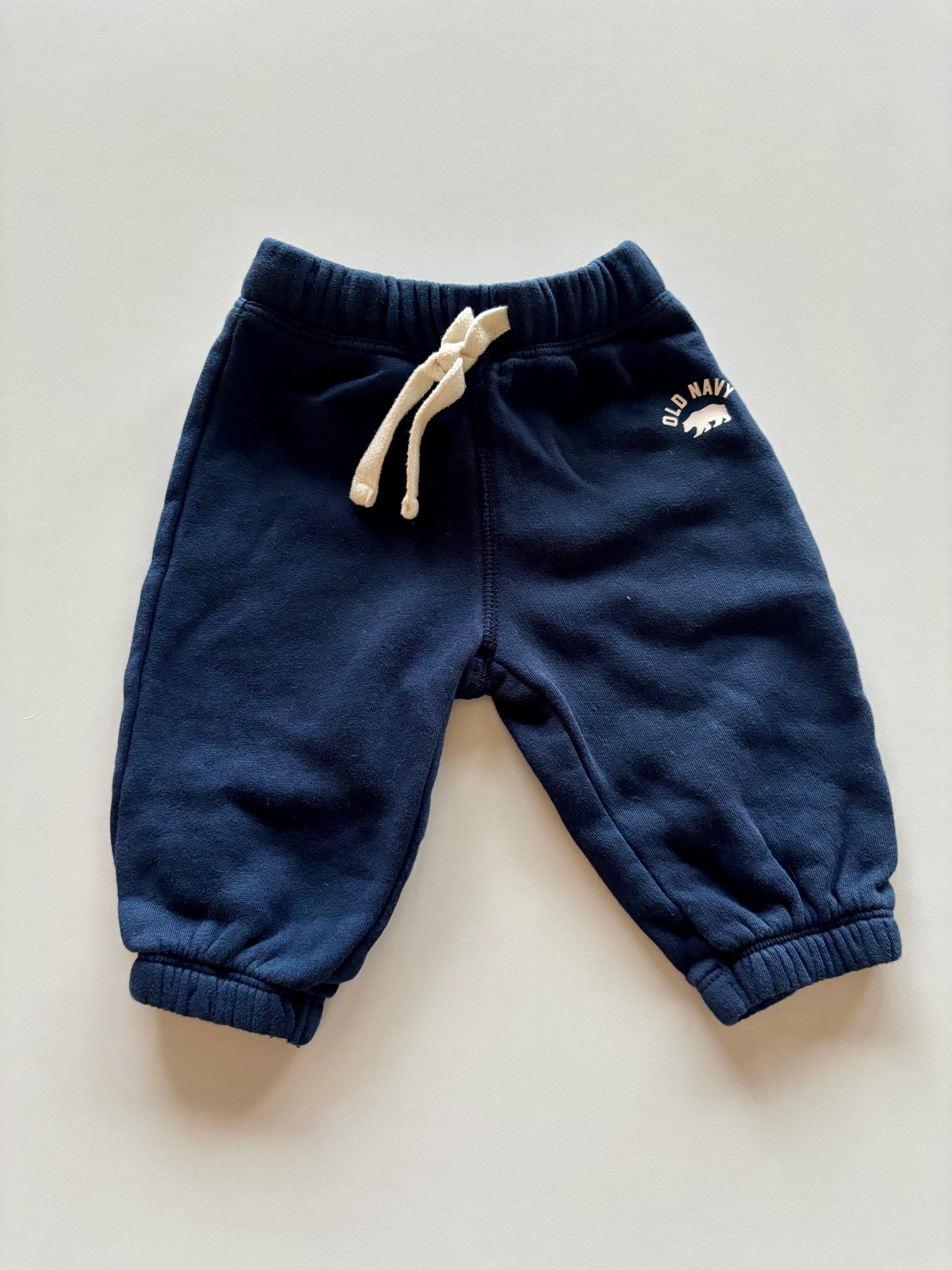 Old Navy size 3-6 months. Elastic waist with functional drawstring. Still fleecy inside!